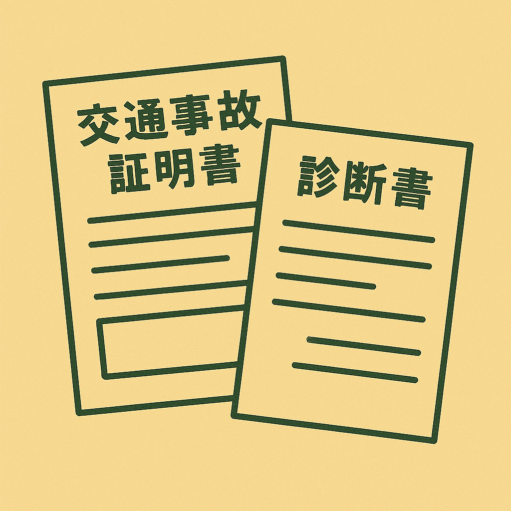 ・診断書、診療報酬明細書(任意保険会社が支払った治療費がある場合)